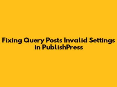 Fixing 'Query Posts' Invalid Settings in PublishPress